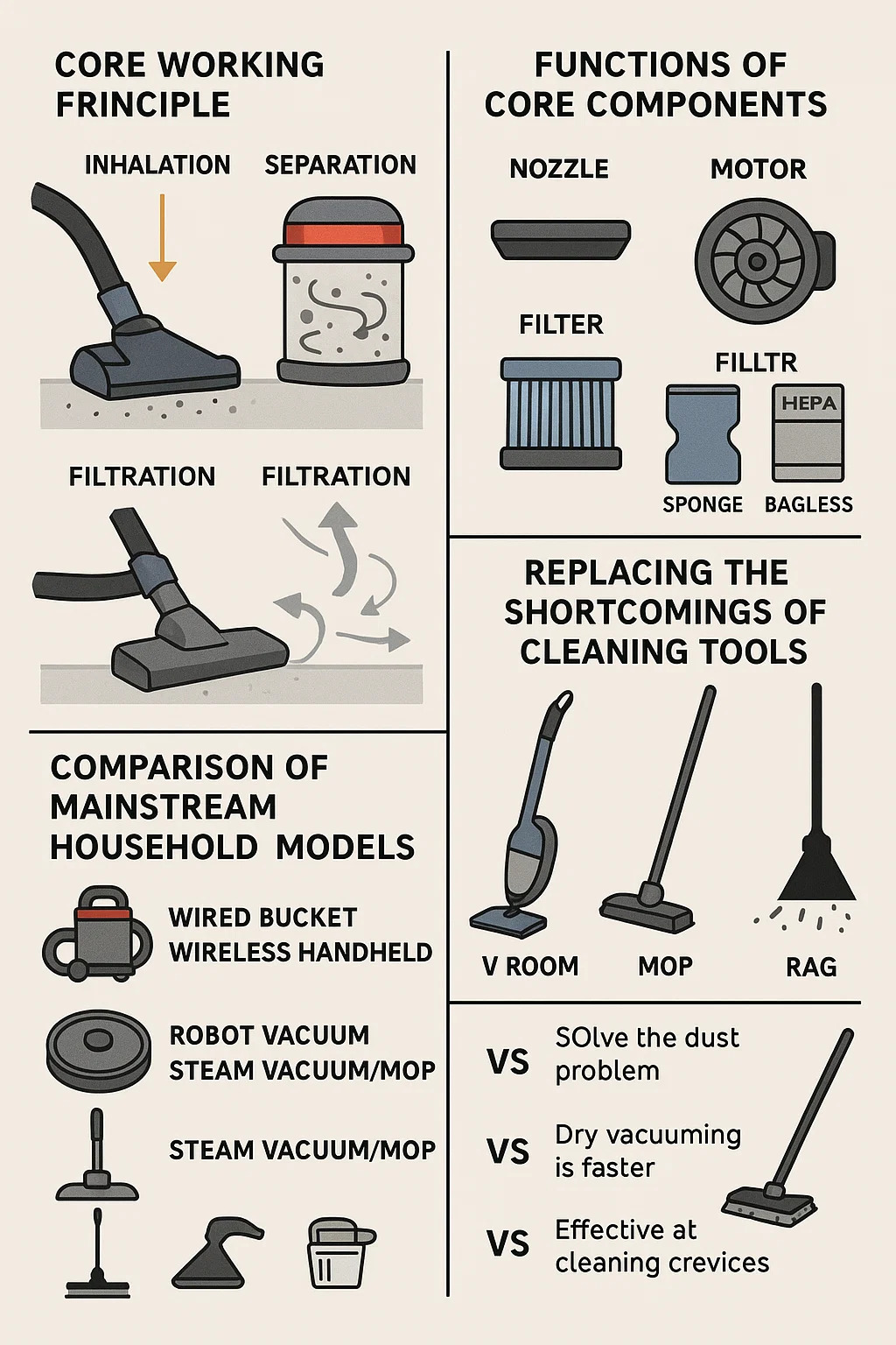 Vs MOP: l'aspirapolvere secco è più veloce, ma non può rimuovere le macchie ostinate;